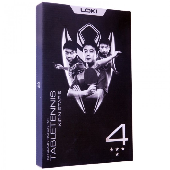 LOKI Kirin 4 Star створений для гравців, стремящихся грати високоякісним інвентарем. Підбір основ і накладок забезпечує відмінний контроль м'яча в поєднанні з відбитком атакуючих можливостей. У ракетках використовується 7-шарова основа і накладки Loki Rxton з товщиною губки 2,0 мм.